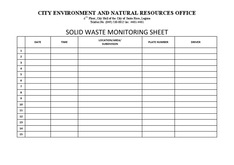 Solid Waste Monitoring Sheet PDF